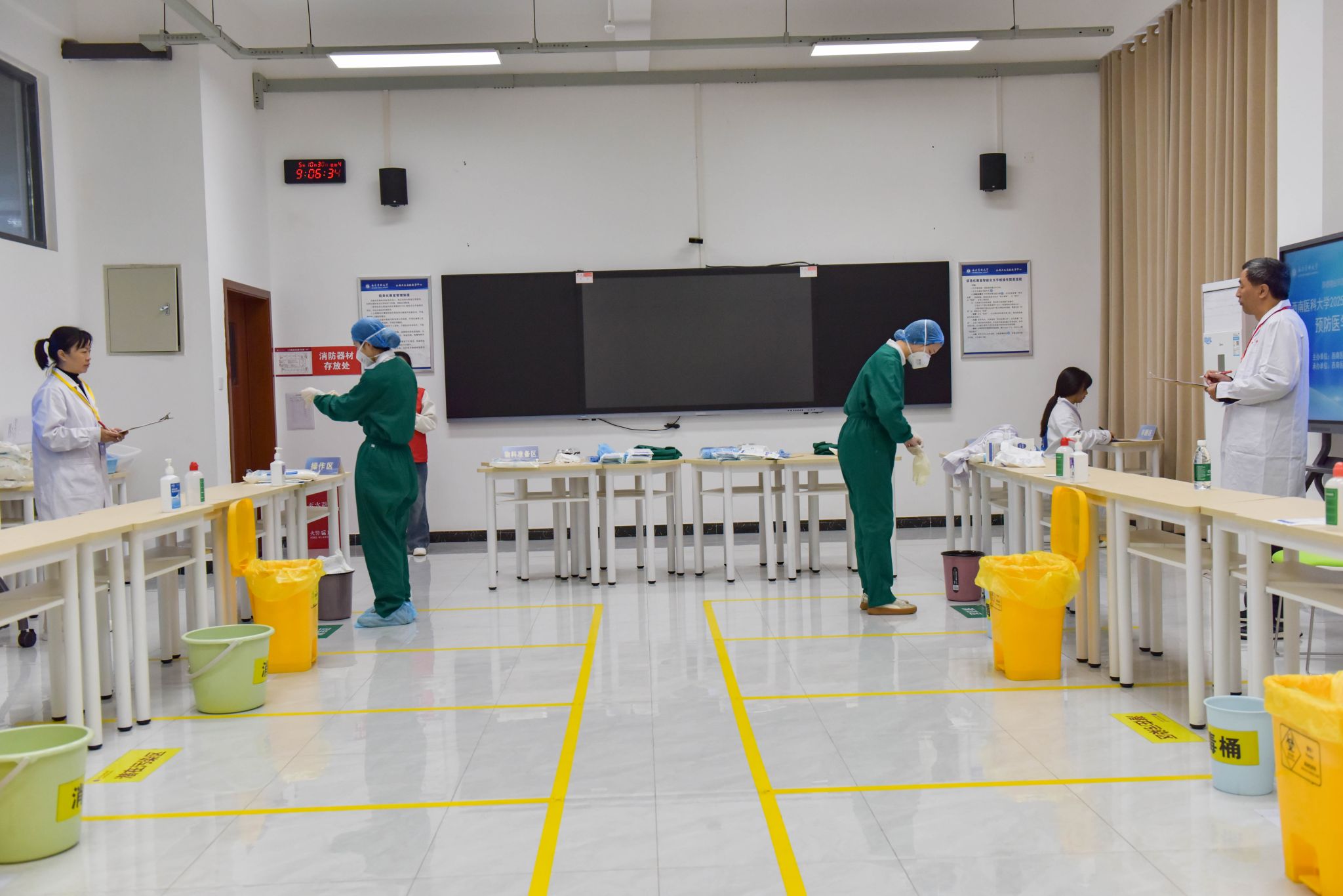 本次大赛经过初赛选拔,来自省内外8个疾控中心的8支队伍、32名学生选手参加决赛。本次比赛由公共卫生基本理论测试、案例分析和数据分析竞赛、公共卫生基本技能竞赛三大板块组成。其中,公共卫生基本技能竞赛涵盖临床基本技能、个体防护技能、样本采集和现场检测、卫生处理4个站点,全面考察参赛选手的专业技能、医学人文关怀与团队协作能力。