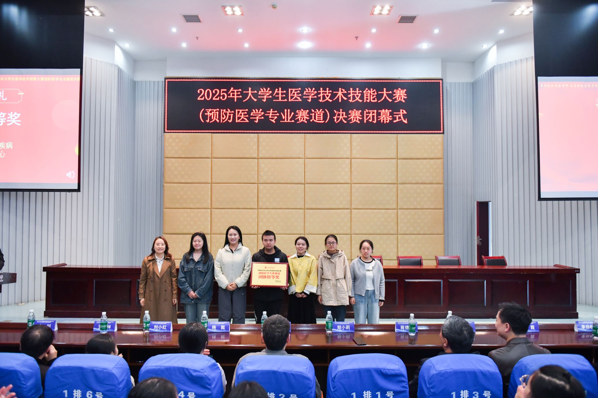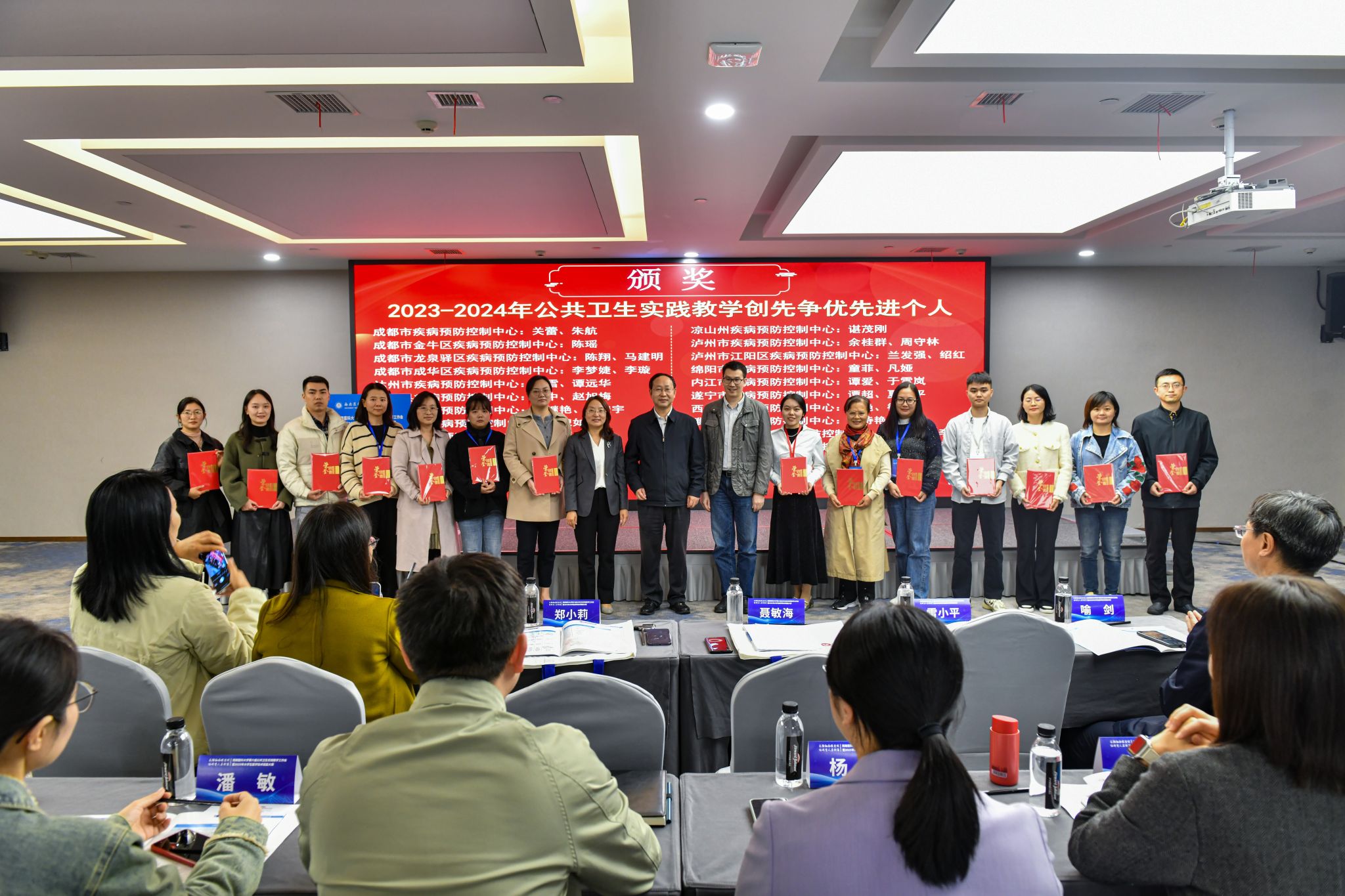 闭幕式上,郑小莉及相关负责人、参赛师生、裁判员参会。裁判长蒋德勇、专家蒲霞总结点评,肯定选手表现的同时指出不足。最终,重庆市万州区疾控中心获团体特等奖;成都市郫都区疾控中心、泸州市江阳区疾控中心获团体一等奖;成都市疾控中心、重庆市永川区疾控中心获团体二等奖;绵阳市疾控中心、自贡市疾控中心、资阳市疾控中心获团体三等奖,大赛另决出7项单项奖,与会领导及专家为获奖者颁奖。