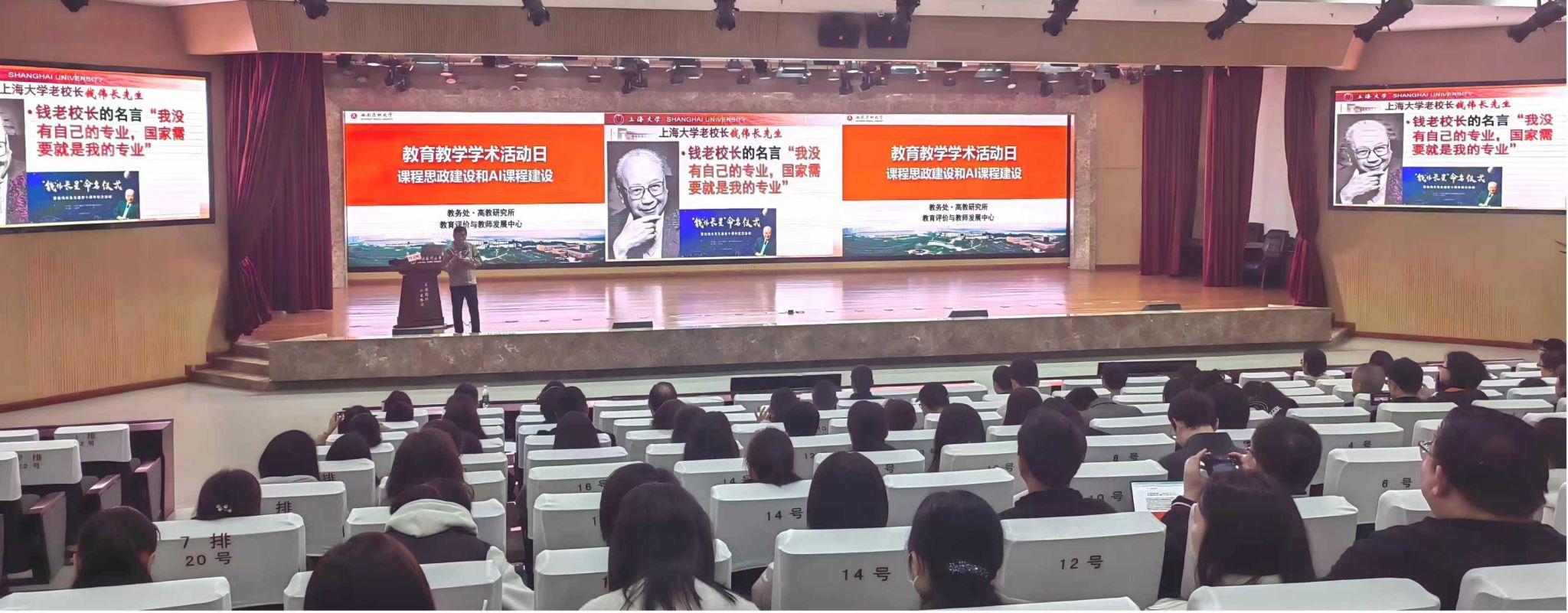 为深入贯彻落实教育部关于全面推进高等学校课程思政建设、加快教育数字化转型的部署要求,落实立德树人根本任务,3月6日上午8:30,我校在第一学术报告厅举行新学期首次“教育教学学术活动日”主题讲座,特邀上海大学原副校长、二级教授、博士生导师叶志明作题为“课程思政和智慧课程建设”的专题报告。学校党委副书记、校长何涛出席活动,各院系分管教学领导、教务科长、校级智慧课程负责人及骨干成员、教师代表等近200人参加。讲座由教务处处长郑小莉主持。