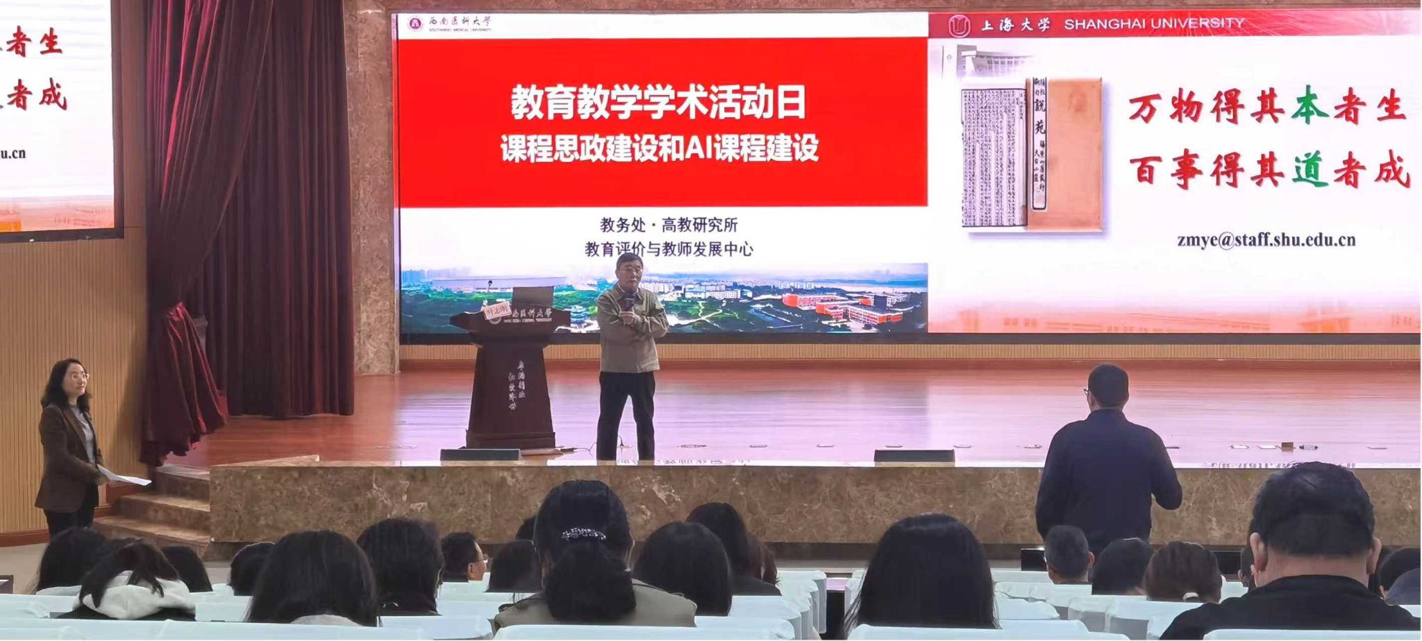 报告会上,叶志明教授结合其丰富的管理经验、深厚的学术积淀以及在一线课程建设中的切身体会,围绕“课程思政建设”与“智慧课程建设”两大主题进行了深入阐述。叶教授的报告既有理论高度,又有实践深度,为在场教师破解教学改革难点提供了新思路,更为大家打开了一扇从“教书”走向“育人”的新视窗。